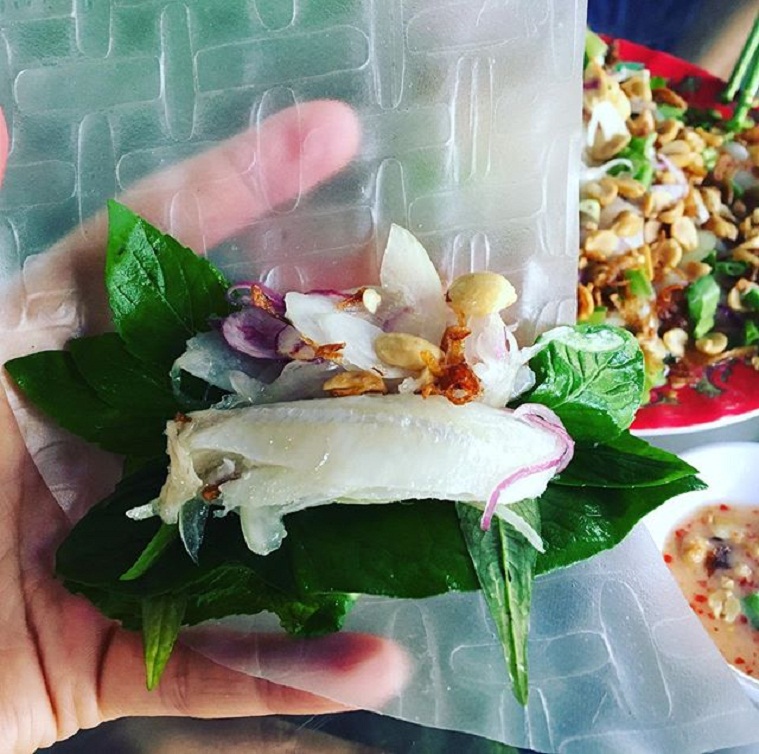 Chả cuốn cá trích là một món đặc sản nữa của người dân Phan Thiết xuất hiện trong danh sách 15 món ngon ăn chơi chơi này. Đây là món ngon Phan Thiết “thôi miên” mọi du khách đến vùng đất này bằng vị cá béo ngậy, chấm nước mắm chua ngọt đậm đà và rau sống tươi ngon. Cuộn tất cả chúng trong bánh tráng mỏng rồi thưởng thức sự hòa trộn thứ thiệt của từng miếng, đúng là tuyệt cú mèo.