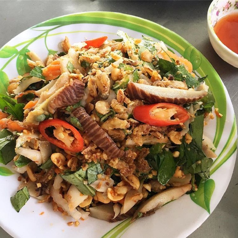 Nhắc đến món ngon du lịch Phan Thiết, người ta không thể không nhắc đến món ốc giác. Trong tất cả các món được chế biến từ ốc giác, món gỏi ốc giác vẫn là đặc biệt nhất, làm cho nhiều thực khách say đắm nhất. Gỏi ốc giác là sự hòa quyện của ốc giác, đu đủ, rau răm, hành tây giòn sật, cùng chút thịt luộc và giấm đường, đậu phộng thơm bùi. Đây chính là món ăn vặt, ăn chơi chơi của người Phan Thiết mà khiến bao người nhớ cả đời.