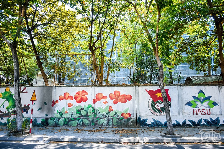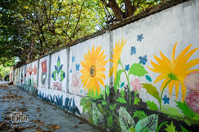 Chỉ cần đến đường Nguyễn Phong Sắc, khu vực công ty thuốc lá cũ là ngay lập tức nhìn thấy hàng loạt bức tranh đẹp mắt này.