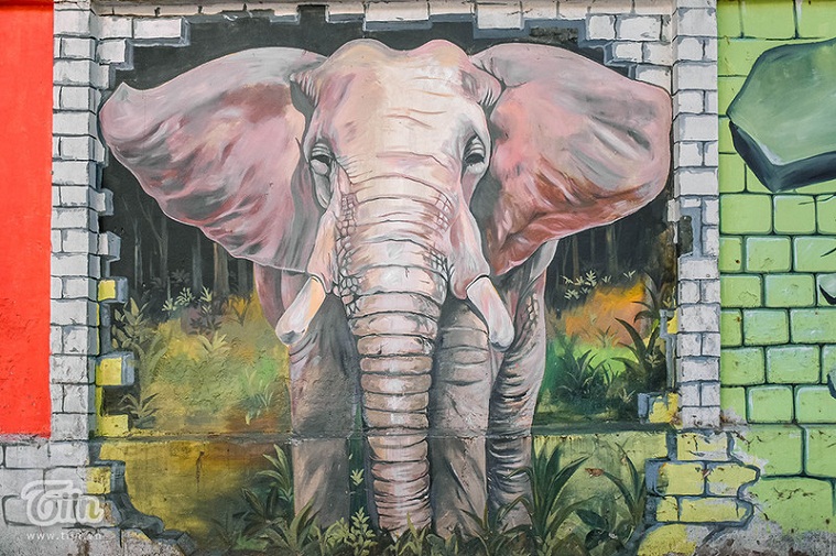 Gọi là ‘bức tường sinh vật’ bởi ở đây quy tụ hàng chục ‘phiên bản’ động vật sinh động và thu hút ánh nhìn bất kì ai đi ngang qua. Từ những sinh vật gần gũi như chim chóc, voi cho đến khủng long và có cả những nhân vật bất tử trong các tác phẩm điện ảnh nổi tiếng.