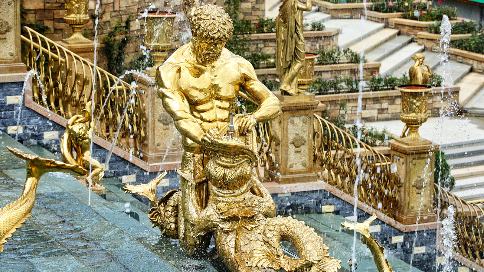 Thác Thần Mặt Trời là cụm công trình điêu khắc nghệ thuật mới với chủ đề thần thoại Hy Lạp cổ đại, gồm hơn 40 bức tượng vàng.