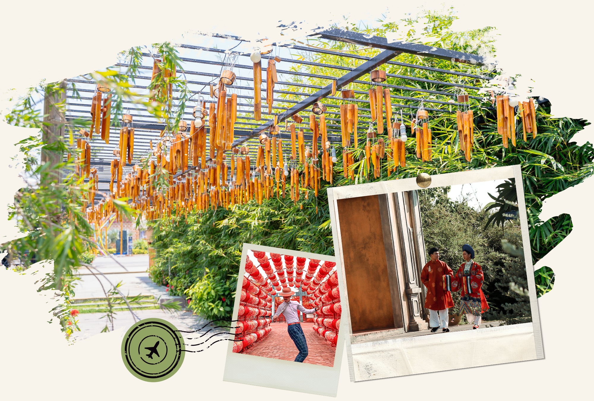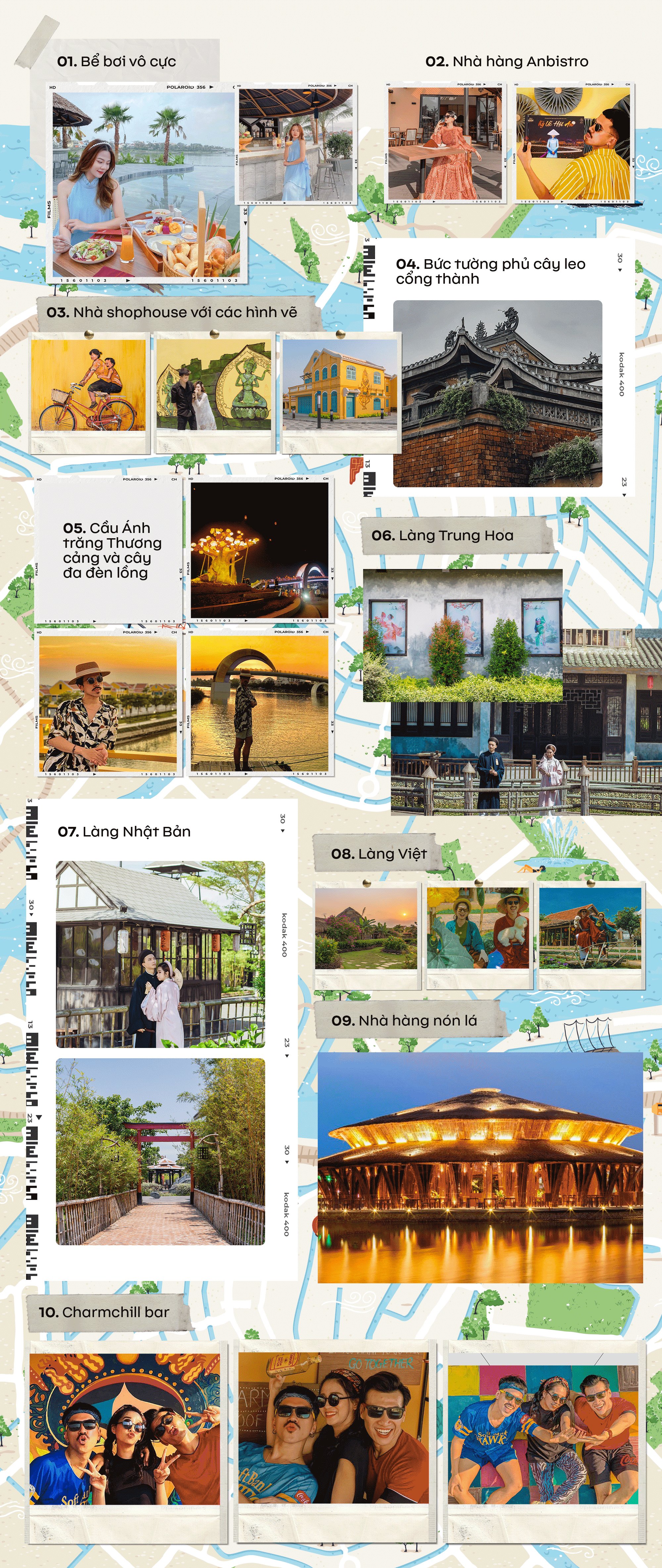 Nằm tách biệt với không gian của phố Hội, và được bao bọc bởi dòng sông Hoài êm đềm, Đảo Ký Ức Hội An nổi bật với những công trình kiến trúc được lấy ý tưởng từ những dãy nhà cổ của Hội An với màu vàng đặc trưng và mái ngói âm dương. Ở nơi đây, dường như chỉ cần đưa máy lên, dù là từ bất kỳ góc độ nào, du khách cũng có thể có một bức pose hoàn hảo.