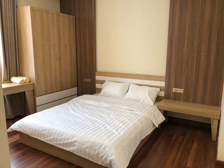 4 phòng ngủ riêng ( gồm 1 giường đôi + 1 giường đơn + 1 đệm dự phòng ) với chăn ga gối cao cấp kèm khăn tắm.