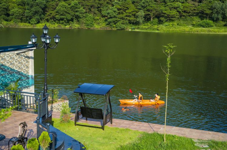An Villa tọa lạc trên diện tích 5000m2 với 130m mặt hồ, bao gồm rất nhiều tiện ích. Đến đây vào mùa đông thì bạn đừng bao giờ bỏ qua bể nước nóng – bể bơi bốn mùa nhé! Homestay/ resort có bể nước nóng này luôn vệ sinh sạch sẽ kể cả khi không có khách.