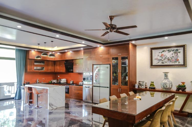 Phòng bếp 70m2 có đầy đủ tiện nghi (bếp từ, tủ lạnh, đồ dùng thông dụng…
