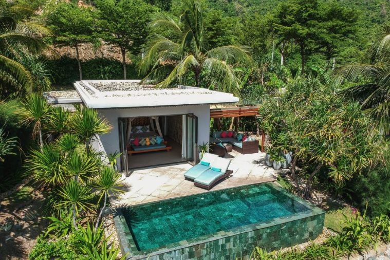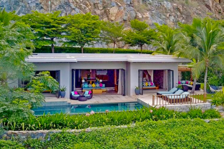Nằm trên những vách đá xinh đẹp, căn biệt thự này có riêng một khu vườn xanh mướt cùng hồ bơi xanh ngọc sang chảnh tạo thành một “quần thể sinh thái” nhìn thôi đã thấy mê mẩn. Mỗi căn có một phòng ngủ với giường đôi King Size nhìn thẳng ra hồ bơi, khu vườn và biển cả đẹp lung linh.