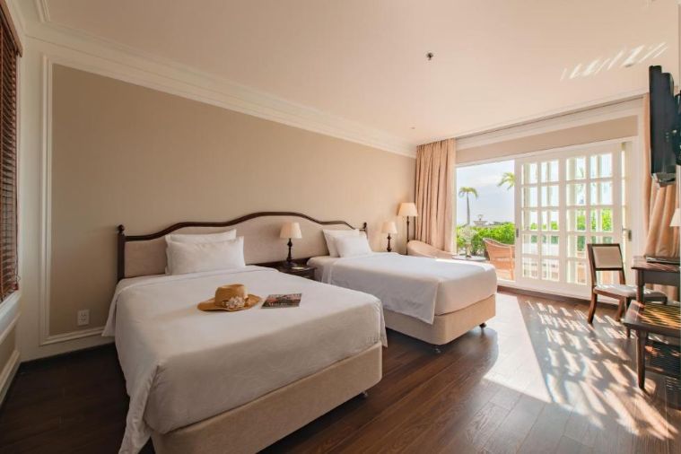 Là căn phòng phù hợp cho 4 người ở, bên trong phòng được đặt giường đôi, 2 giường đơn, 3 giường tùy theo lựa chọn của quý du khách. Với tổng diện tích 35m2, sự rộng rãi Mang đến cho du khách sự thoải mái, với view nhìn ra hướng vườn hay hồ bơi La Mã tuyệt đẹp khiến du khách có thể dễ dàng ngắm nhìn quan cảnh thiên nhiên bên ngoài. Có thể các phòng sẽ được kết nối với nhau tùy vào nhu cầu sử dụng của khách hàng.