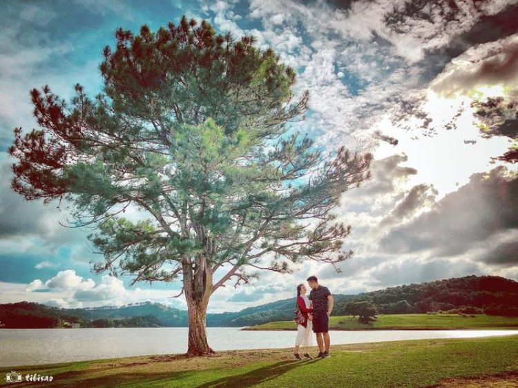 Không làm cho bạn thất vọng, cây thông cô đơn nằm trơ trọi bên sông, khung cảnh xung quanh thoáng đãng, trong lành. Đến đây bạn sẽ có những bức ảnh sống ảo độc đáo bên cây thông và tận hưởng không khí tuyệt vời này.