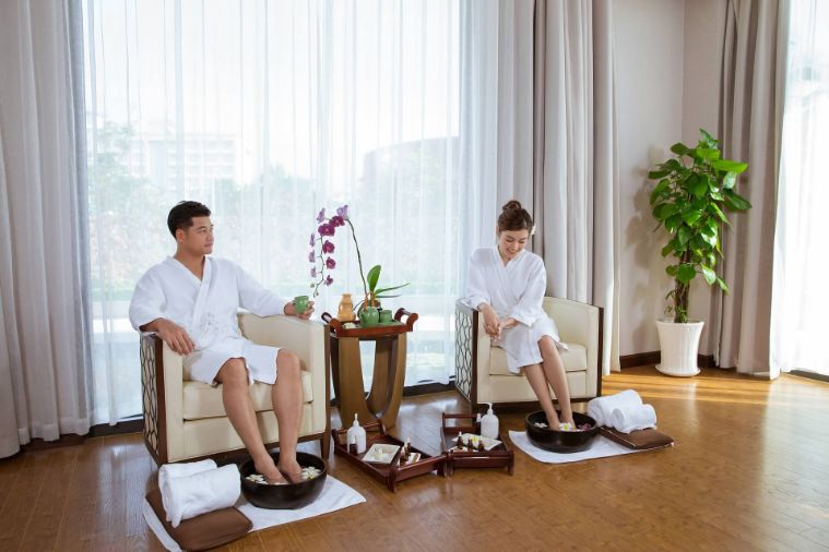 Sau những ngày làm việc căng thẳng và mệt mỏi, còn gì tuyệt vời hơn khi được ngâm mình trong làn nước mát lành. Sử dụng cùng liệu trình thư giãn qua những bài tập trị liệu cao cấp và chuyên nghiệp qua bàn tay khéo léo của đội ngũ nhân viên. Thêm vào đó là hệ thống phòng nghỉ sang trọng với những hoa văn tao nhã làm say lòng bất cứ ai.