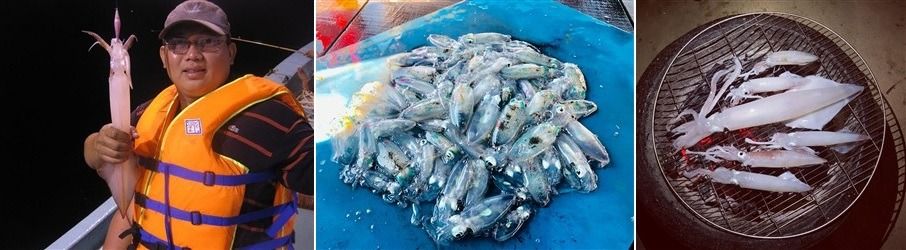 Những chú mực tươi rói vừa được câu lên – thành quả của du khách sau chuyến đi