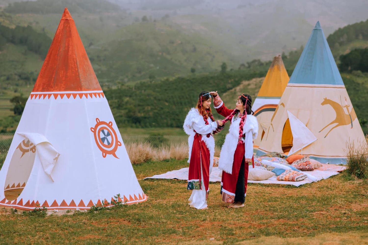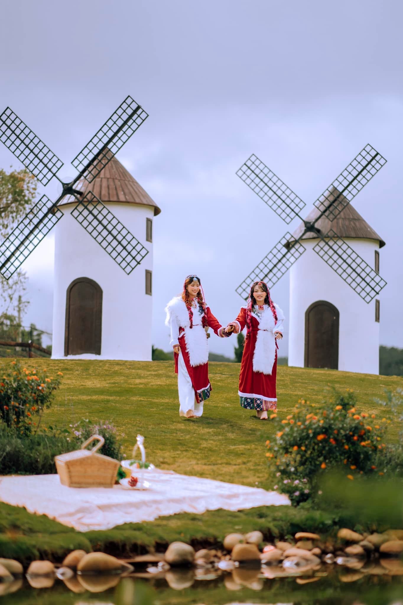 Mongo land Đà Lạt sở hữu một khuôn viên rộng lớn, được bao phủ bởi đồi núi và thảo nguyên xanh mướt. Điểm nhấn nơi đây là những chiếc lều Mông Cổ đầy màu sắc và những chiếc cối xay gió.